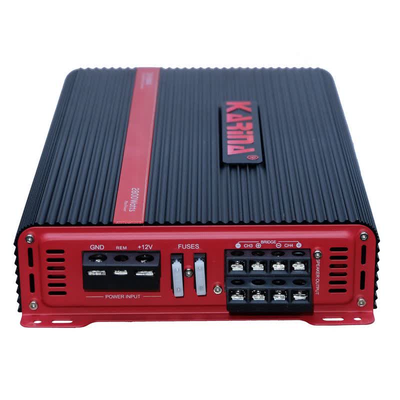 آمپلی‌فایر Karina KX-4504 یک آمپلی‌فایر ۴ کاناله قدرتمند است که با توان اسمی ۴×۴۵ وات روی ۴ اهم و ۴×۶۰ وات روی ۲ اهم، صدایی شفاف، دقیق و بدون افت ارائه می‌دهد. این مدل با حساسیت مناسب و واکنش فرکانسی استاندارد، انتخابی ایده‌آل برای ارتقای سیستم صوتی خودرو و گرفتن بالاترین راندمان از باندهای جلو و عقب است